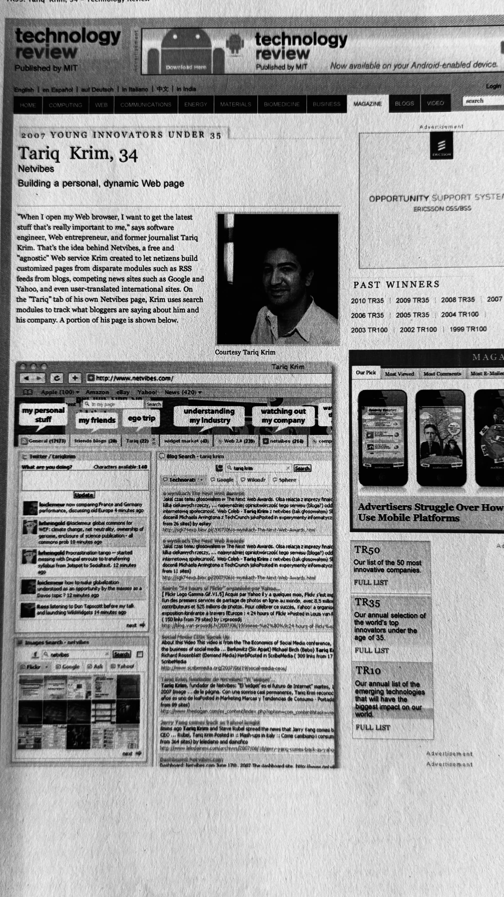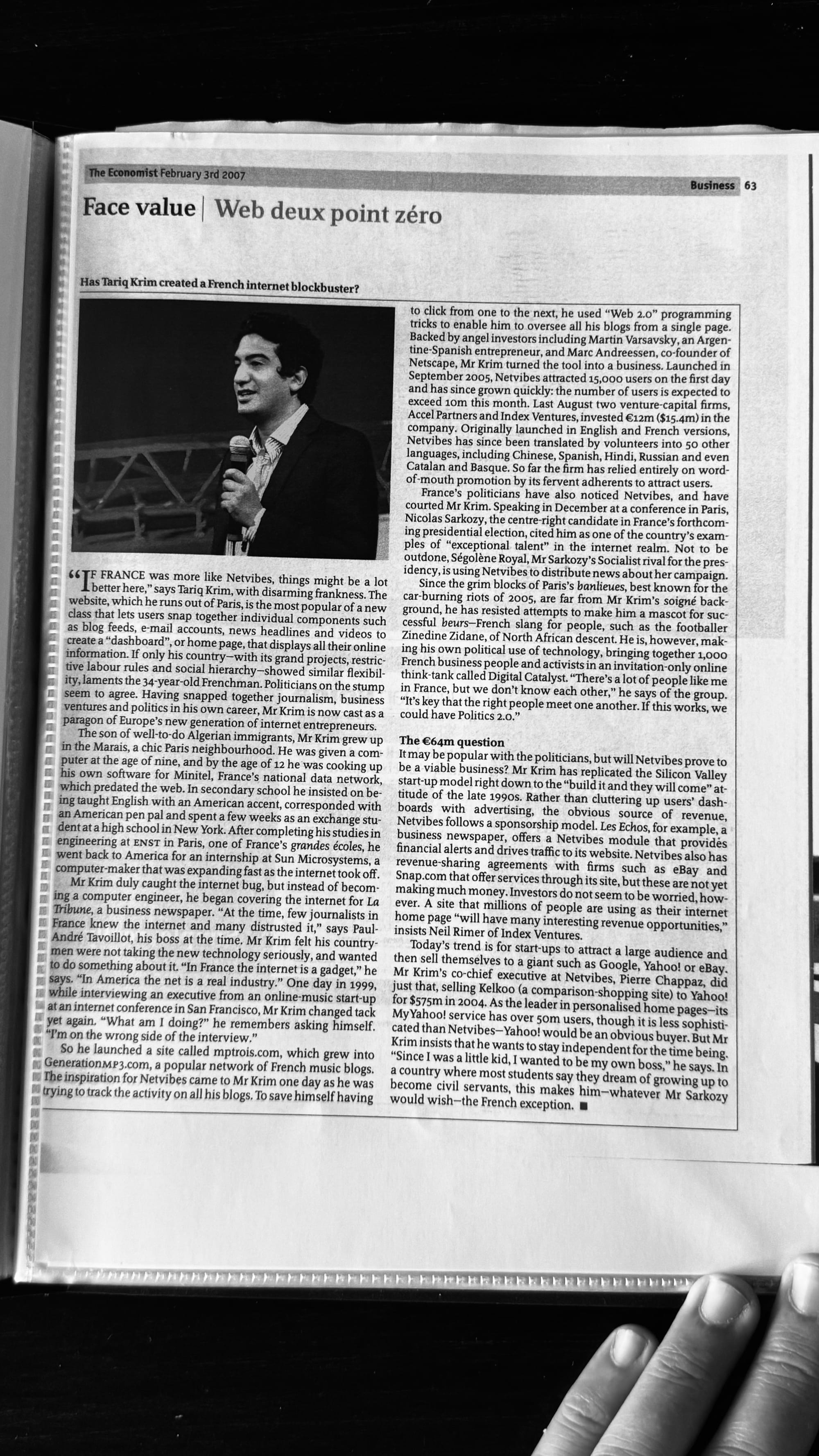 Netvibes a Ă©tĂ© la premiĂšre start-up française de produit Ă ĂȘtre vĂ©ritablement encensĂ©e dans la Silicon Valley : de TechCrunch au MIT, Ă la ConfĂ©rence Web 2.0, Ă mon profil dans Business 2, jusquâĂ la rubrique Personal Tech du Wall Street Journal, qui Ă©crivait que nous avions un meilleur produit que Yahoo!, et mĂȘme Ă la une du Guardian.